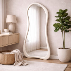 Miroir Dune – Design Organique en Bois Massif - Blanc cassé, 180 x 100 cm