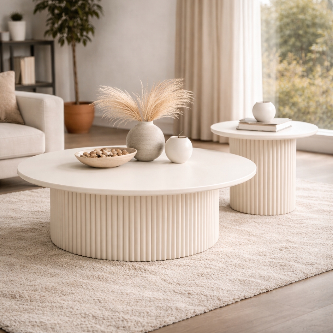Avec leurs formes rondes et leurs bases texturées, ces tables offrent un style contemporain