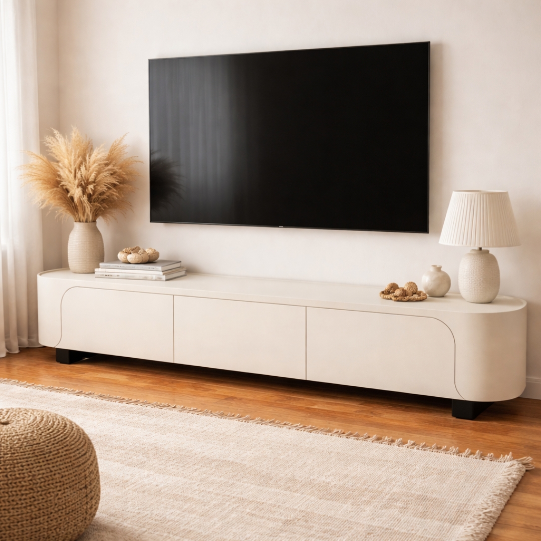 Le Meuble TV Lina se distingue par ses formes arrondies et son esthétique