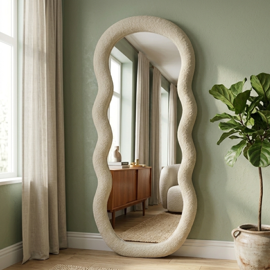 Le Miroir Bulle – Design Ondulé en Tissu Bouclette