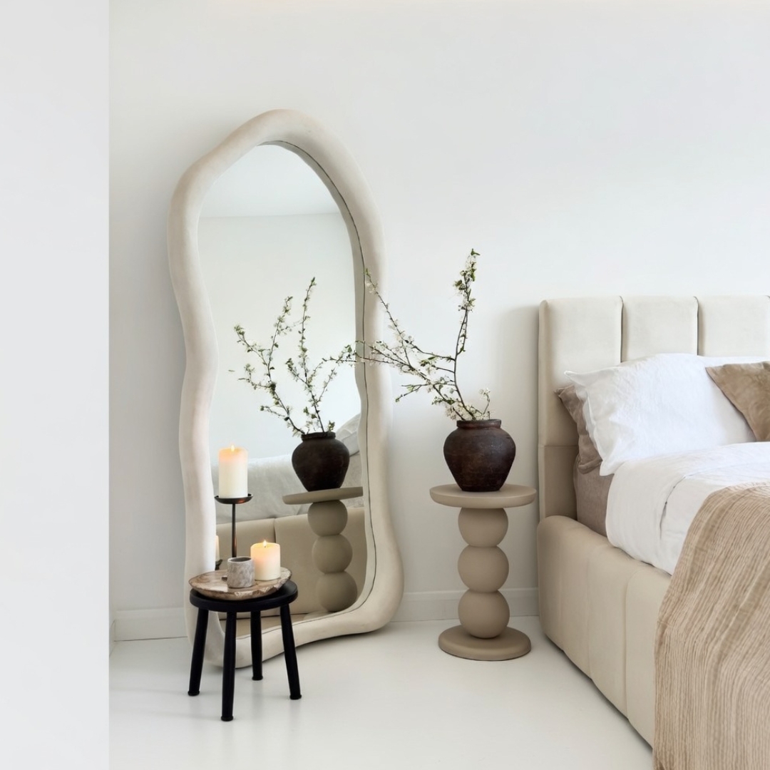Grâce à sa silhouette fluide, ce miroir devient une véritable pièce décorative.