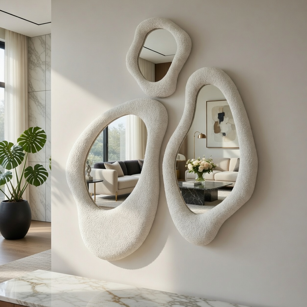Shabby Bouclette – Set de Miroirs Sculpturaux en Tissu Bouclé