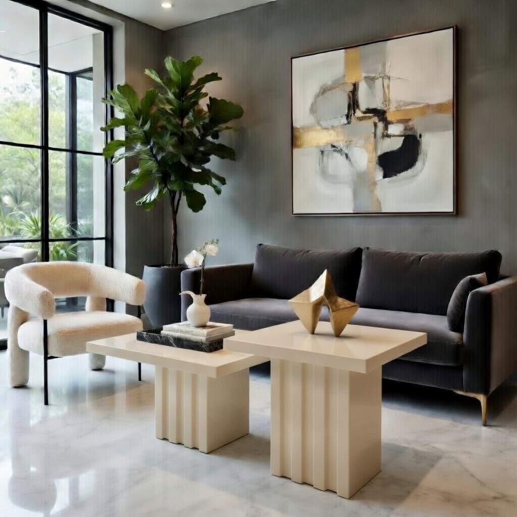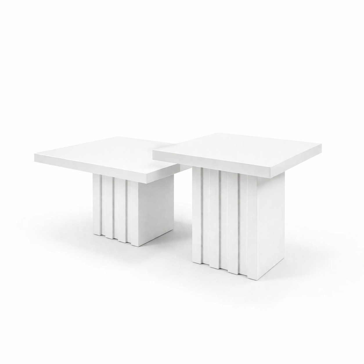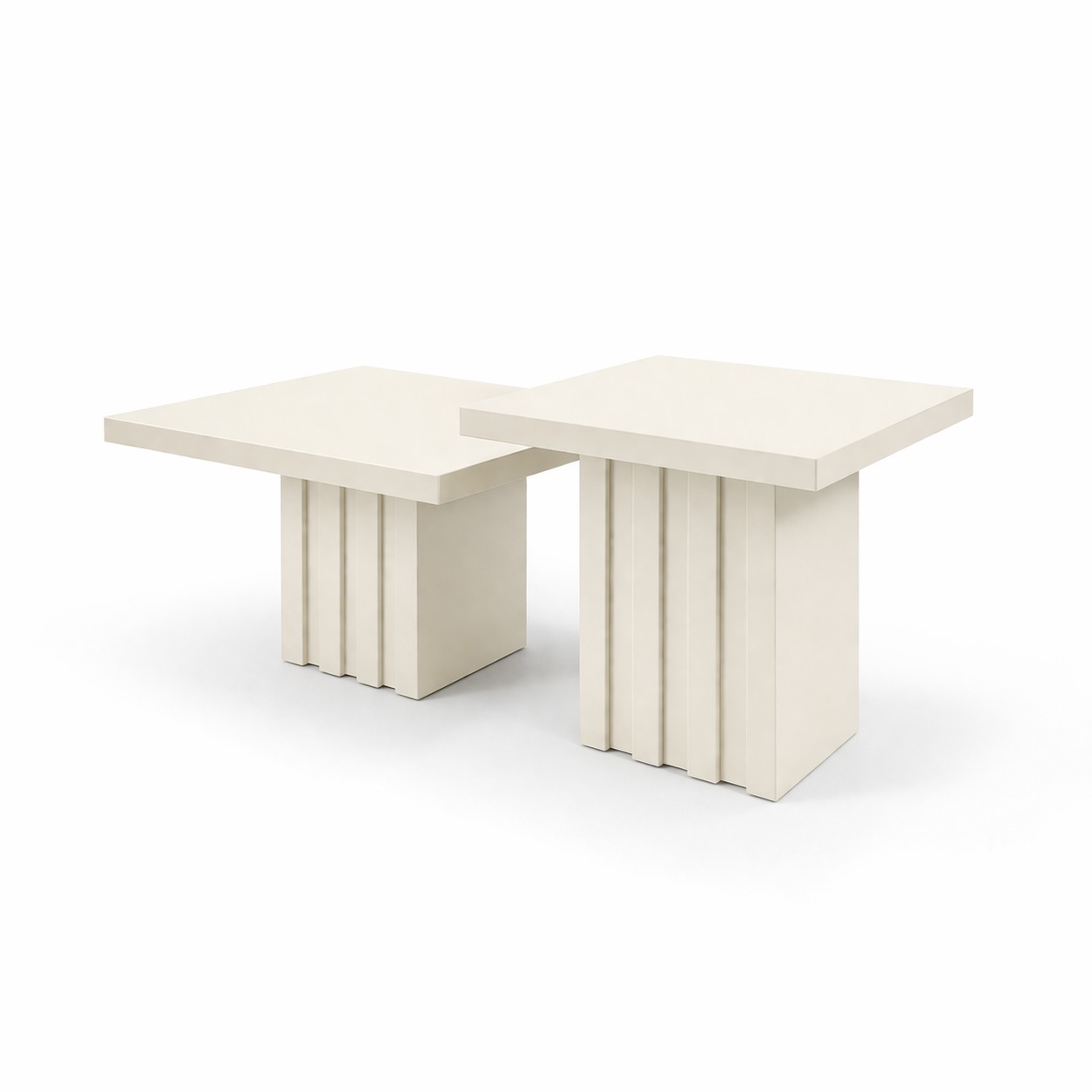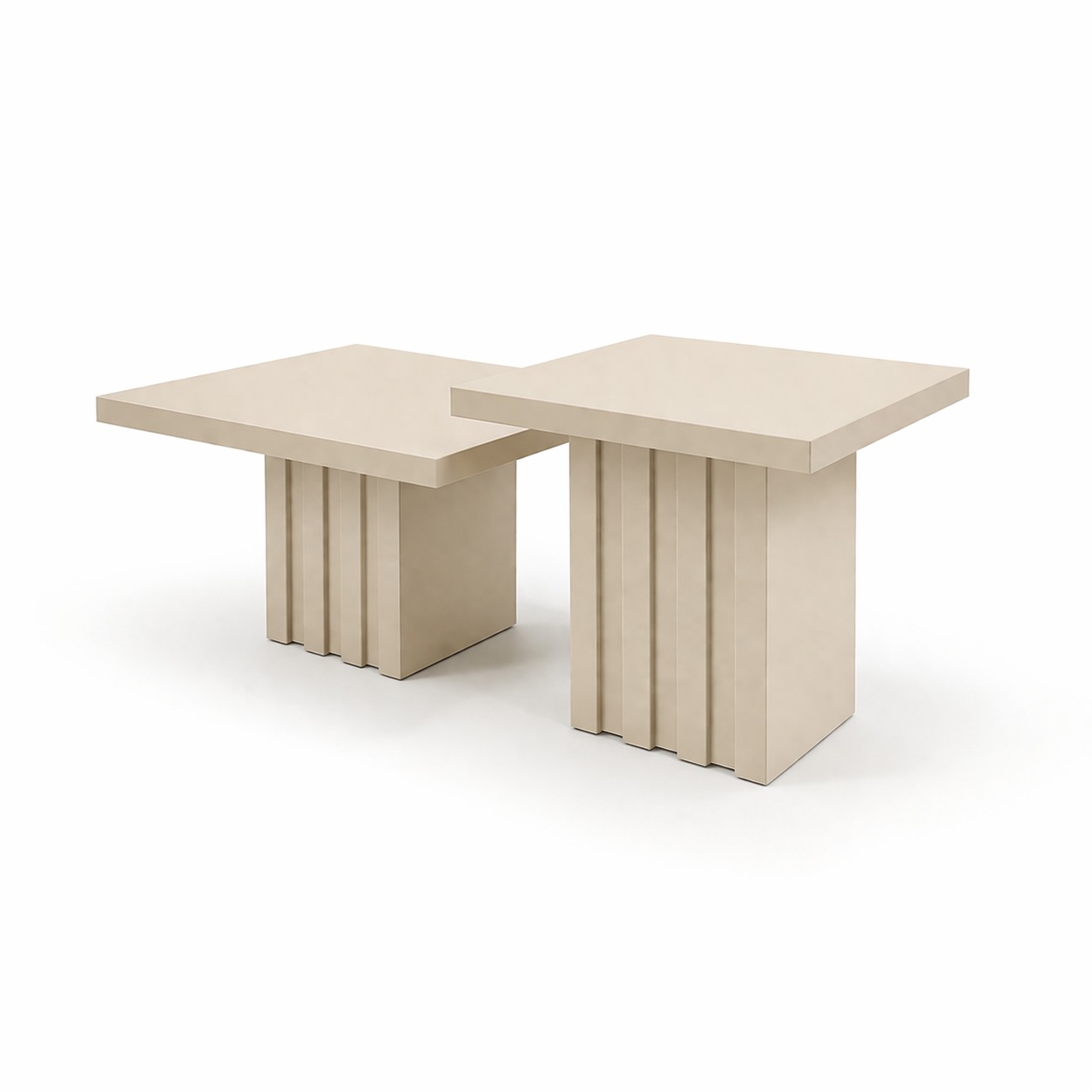 Avec leurs lignes épurées et leurs pieds texturés à effet cannelé, ces tables