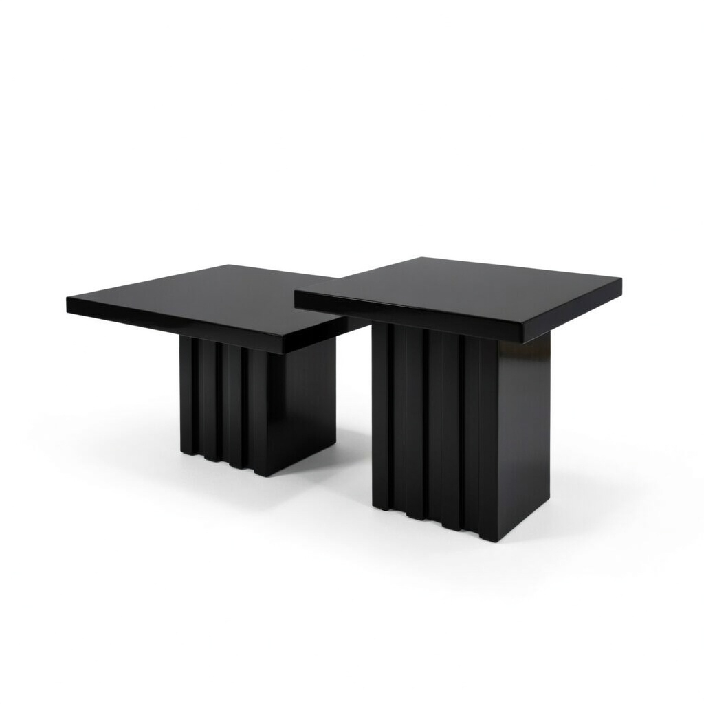 et leur silhouette géométrique élégante. Ce duo de tables gigognes apporte